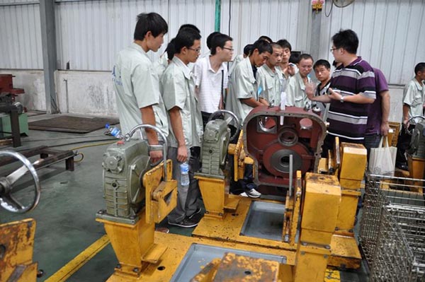 本次研討學(xué)習(xí)班共有來自全國(guó)各地區(qū)共計(jì)40名的一線服務(wù)人員參加。此次學(xué)習(xí)班,引起我司領(lǐng)導(dǎo)高度重視,不僅組織了相關(guān)部門領(lǐng)導(dǎo)系統(tǒng)授課:從新品介紹到各個(gè)機(jī)型的特點(diǎn),從發(fā)動(dòng)機(jī)故障判斷維修到管路液壓件原理介紹,從制動(dòng)系統(tǒng)學(xué)習(xí)到油缸的拆裝;而且與相關(guān)配套廠商協(xié)商,組織全體學(xué)員到相應(yīng)的工廠系統(tǒng)學(xué)習(xí)驅(qū)動(dòng)橋、變速箱、變矩器等主要零配件安裝維護(hù)課程!