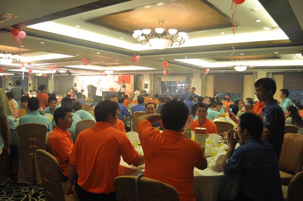 我司每年都會組織全體員工舉行這一活動,而今年恰逢公司新標(biāo)志的發(fā)布,更是加入許多精彩節(jié)目!不僅有傳統(tǒng)的晚宴、博餅,更是邀請專業(yè)的演出公司表演精彩的節(jié)目,還有員工自行組織的拉歌活動。節(jié)目進(jìn)行當(dāng)中,另有抽獎環(huán)節(jié)!總之,就是要讓員工在節(jié)日里紅上加紅,喜上加喜!