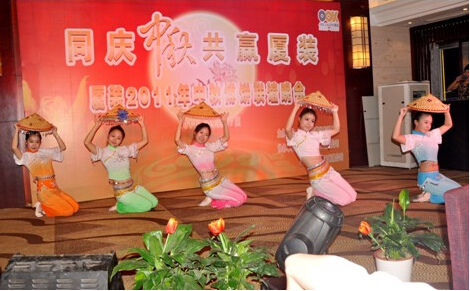 隆隆鼓聲拉開了晚會的序幕,伴隨著掌聲、歡呼聲,現(xiàn)場嘉賓和全體“廈裝”同仁的熱情一浪高過一浪。主持人幽默詼諧,員工熱情高昂,晚會各部分在“同慶中秋、共贏廈裝”的主題引導下,將豐富有趣的“廈裝”企業(yè)文化問答、滑稽的小丑魔術(shù)表演、驚險的雜技及古典的青花瓷舞蹈表演等等串聯(lián)在一起,柔媚的燈光,熱情的音樂,整個會場顯得格外輕松愉悅,熱情洋溢。